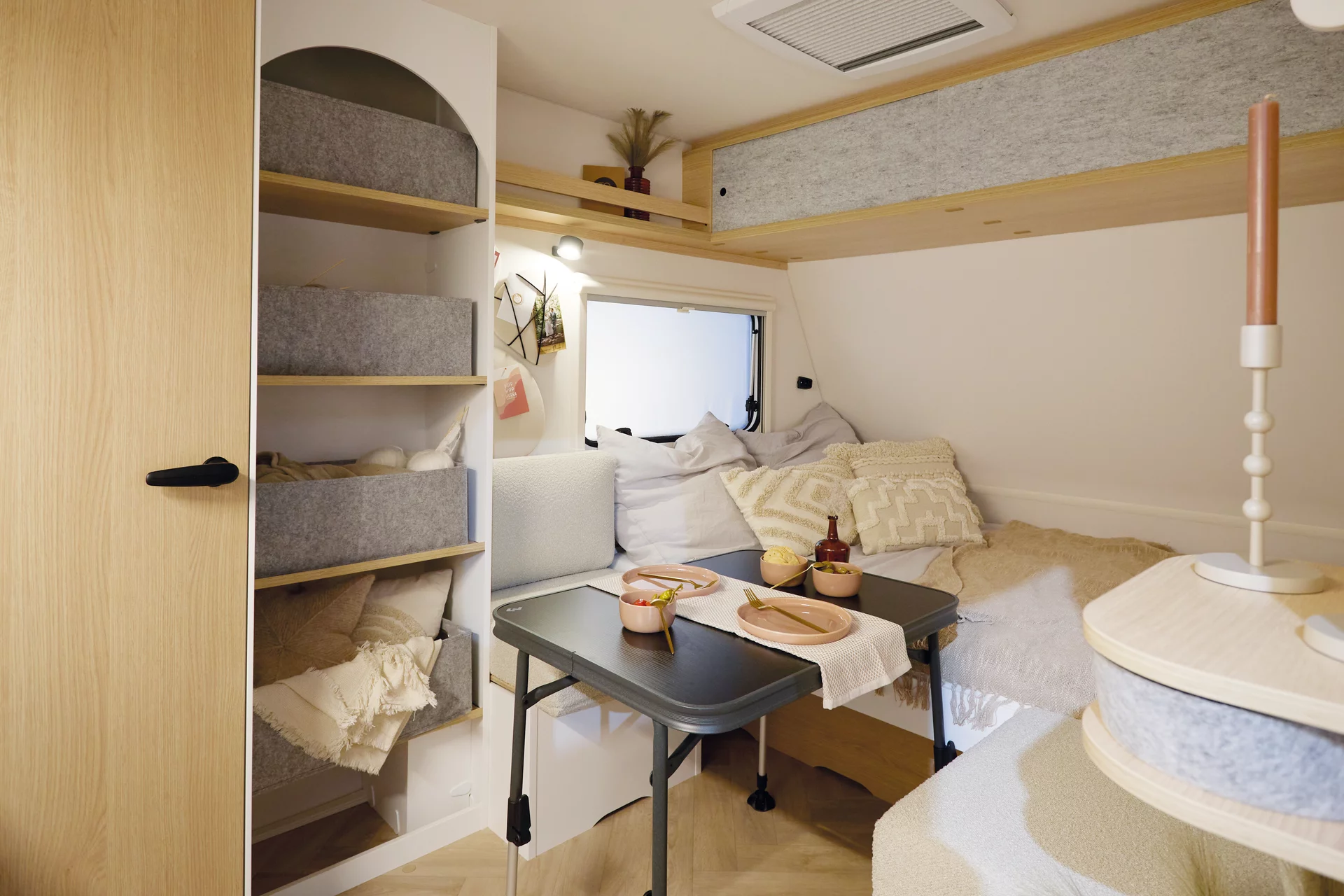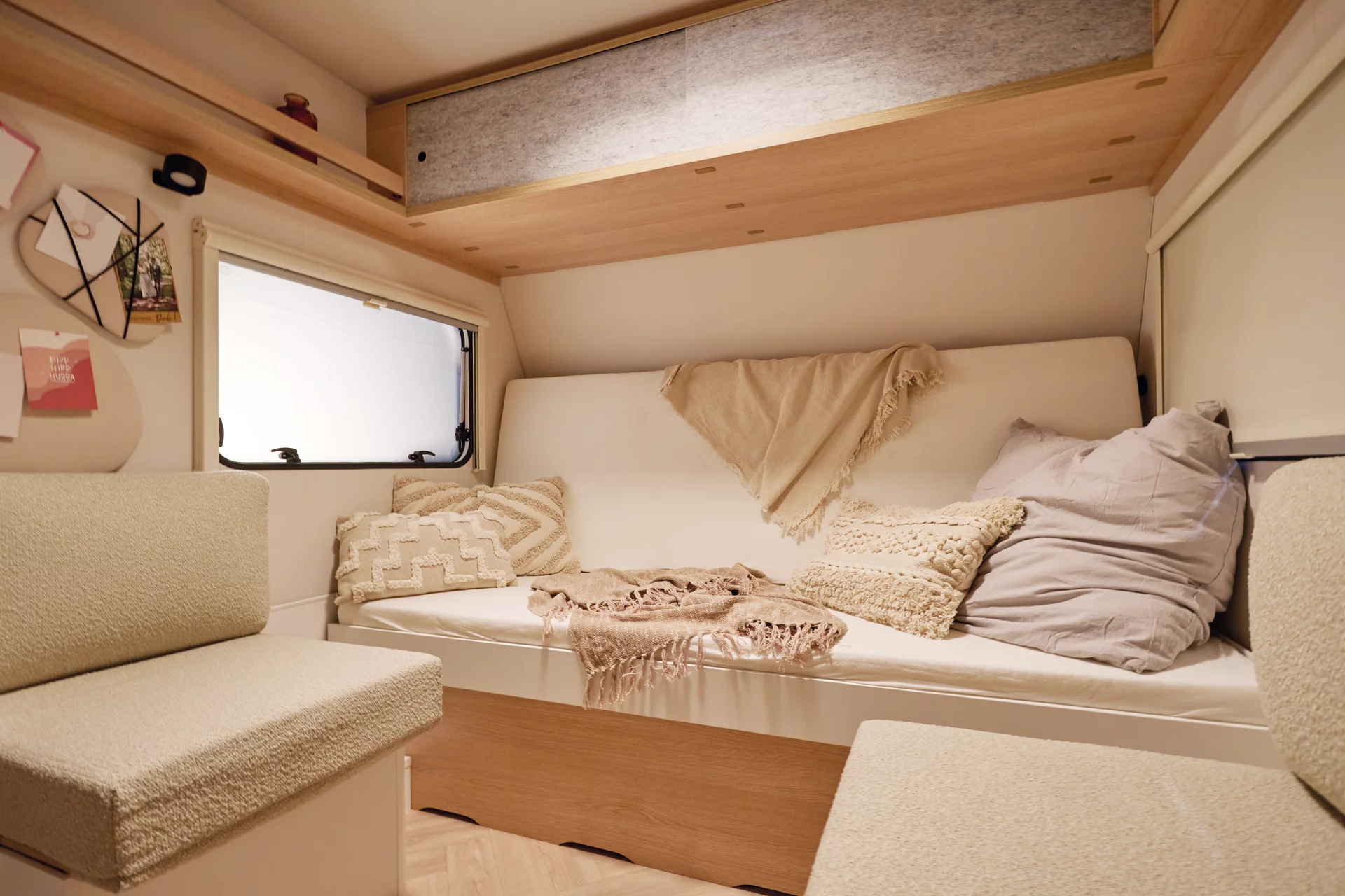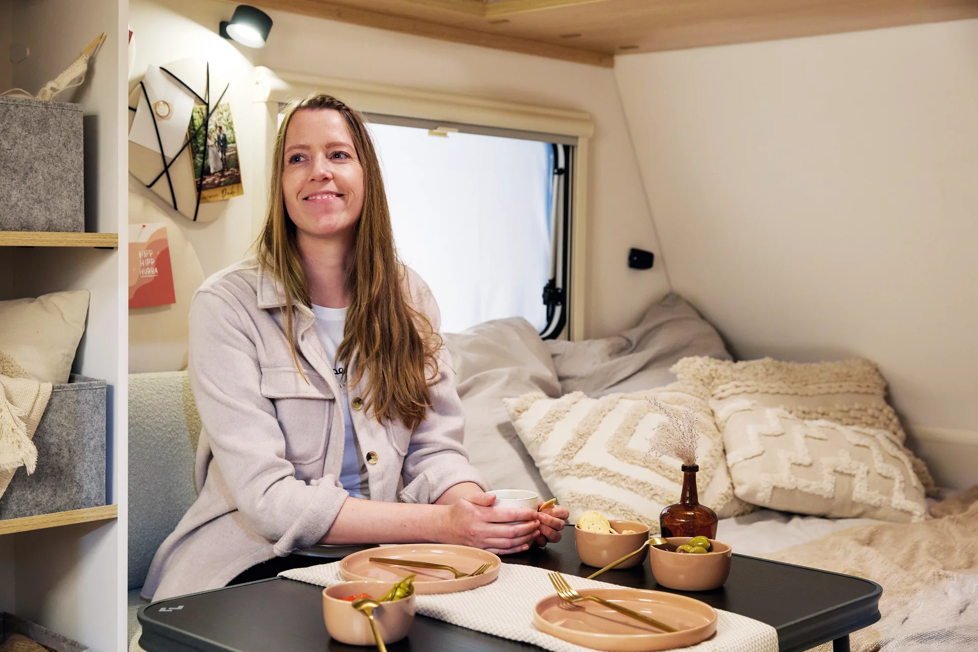 De e:dero-modellen bieden meer comfort dan een conventionele tent, met bedden van 2 meter voor een rustige nachtrust en handige opbergruimtes. Het ontwerp is bewust zonder badkamer en vaste kook- of koelapparatuur, zodat er ruimte is voor persoonlijke oplossingen, zoals een mobiele koelbox. Extra’s voor buiten, zoals weerbestendige kussens en een multifunctionele kampeertafel, maken het kamperen nog veelzijdiger.