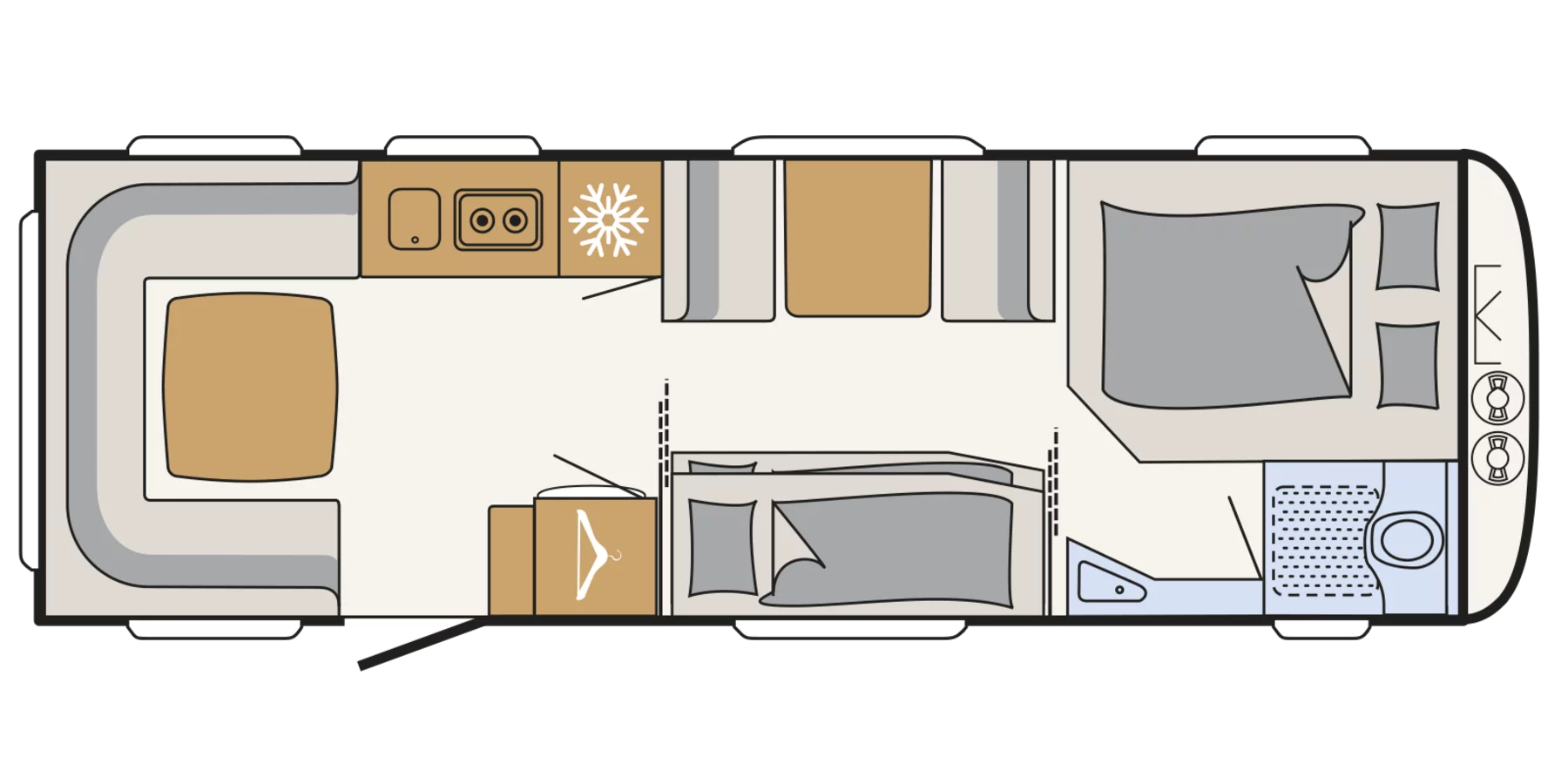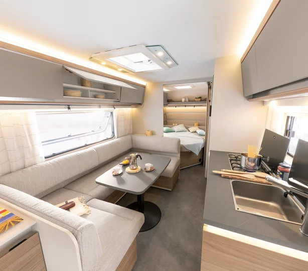 De Nomad is al jarenlang een populair model in het programma van Dethleffs. Met zijn elegante interieur, een omvangrijke standaarduitvoering en zijn stijlvolle details is hij de perfecte caravan voor de veeleisende kampeerder.