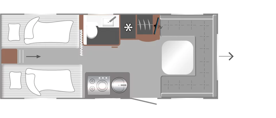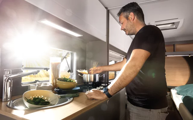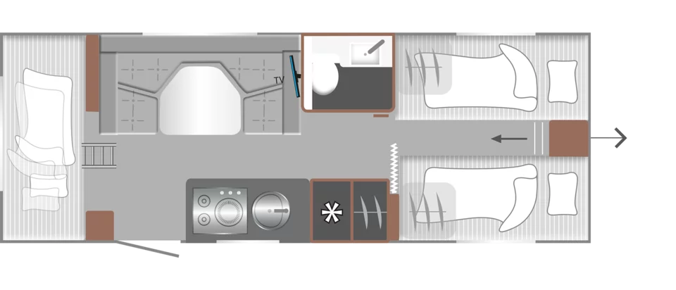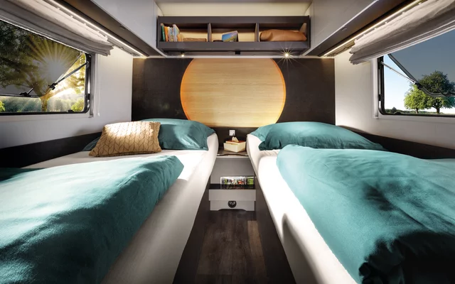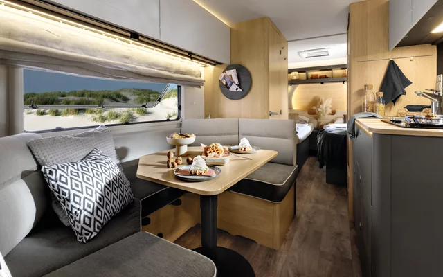 Heb je moeite om in slaap te komen voor je vakantie? In de Videro caravan ben je snel uitgerust dankzij de comfortabele viscoschuimmatrassen en schotelveringbedden. Geniet van rustgevende nachten en word verfrist wakker bij zonsopgang (het hoogtepunt aan de achterzijde). Rugpijn is verleden tijd, want de comfortabele rugkussens met hoofdsteunen zorgen voor extra ontspanning.